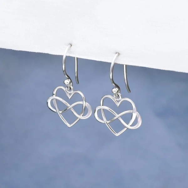 Örhängen är i form av ett hjärta omfamnad av oändliga symbolen.